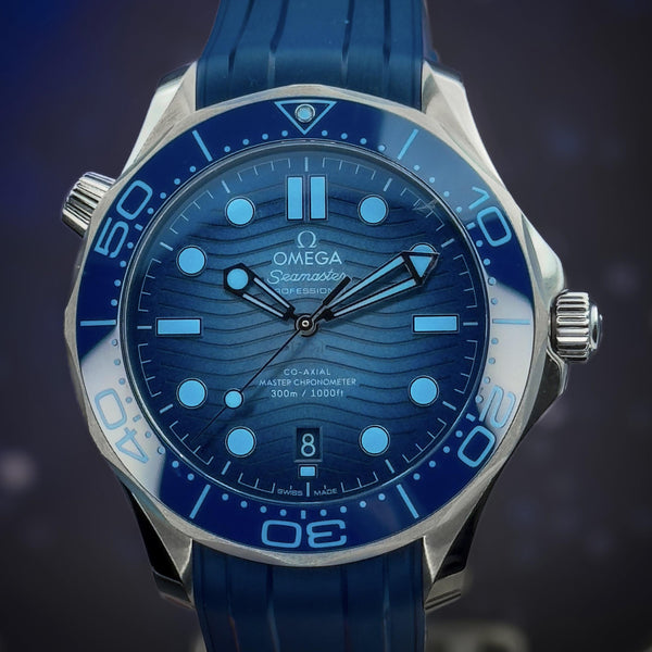 The Omega Seamaster Diver 300M Co-Axial Master Chronometer in blue offers a perfect blend of technical innovation, precision, and style. It continues the legacy of Omega’s iconic dive watch collection with modern updates and enhanced durability.