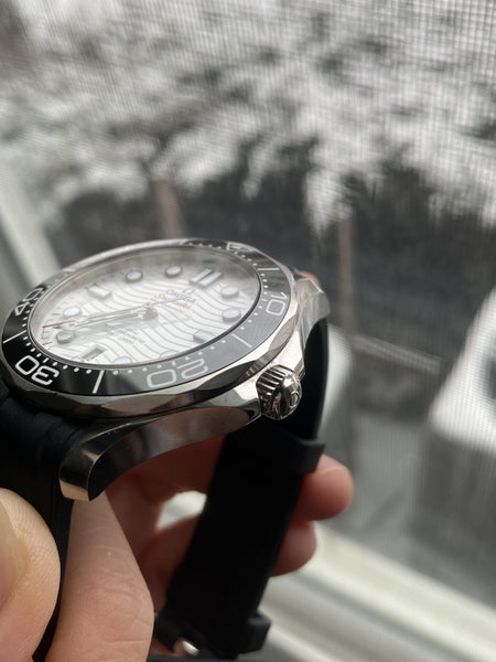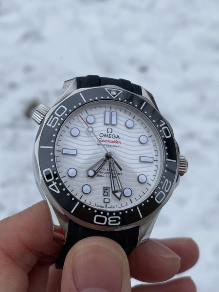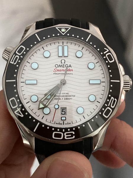 The Omega Seamaster Diver 300M is a modern dive watch that combines innovative technology with timeless design. Featuring a clean and striking white dial, this watch is perfect for both underwater exploration and elegant everyday wear.