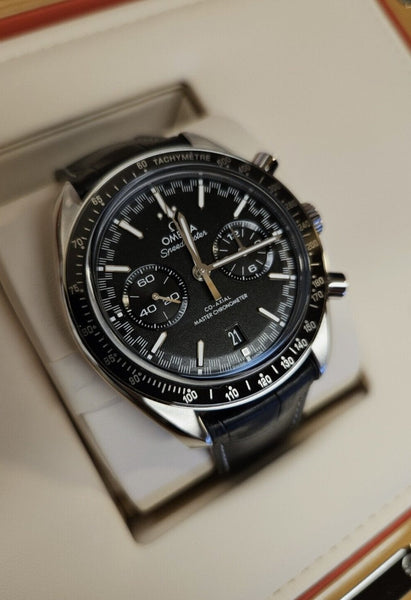 For sale is the Omega Speedmaster Racing Master Chronometer, a modern and sporty chronograph blending cutting-edge technology with the timeless Speedmaster design. This timepiece is a perfect choice for those who appreciate precision, durability, and striking aesthetics.