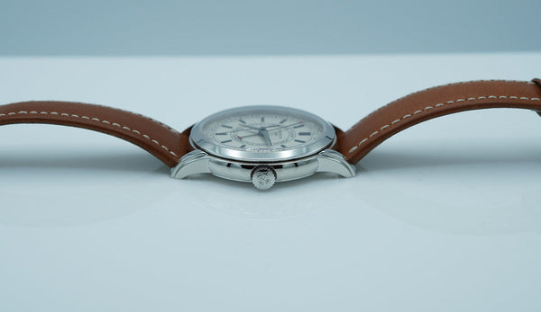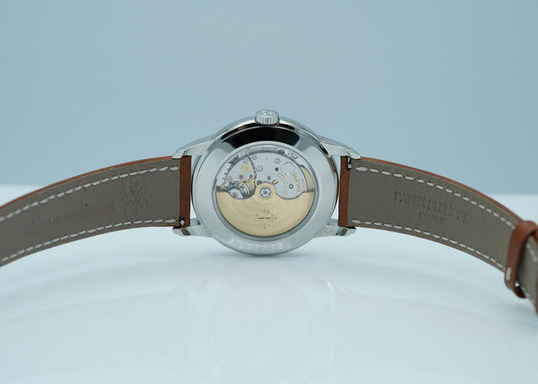 This Patek Philippe Calatrava 5212A is in excellent condition, with the stainless steel case and silvery dial impeccably maintained. The movement has been fully serviced and is performing flawlessly, ensuring reliable functionality for years to come.