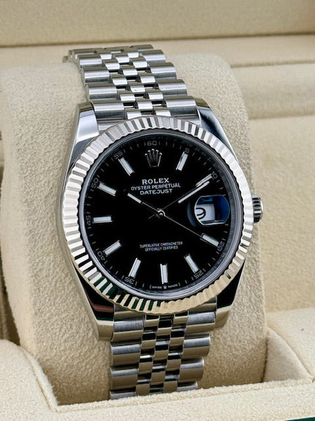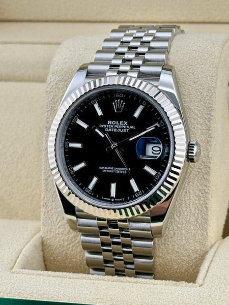 Rolex Datejust 41 126334 – Black Stick Dial, White Gold Fluted Bezel, Jubilee Bracelet