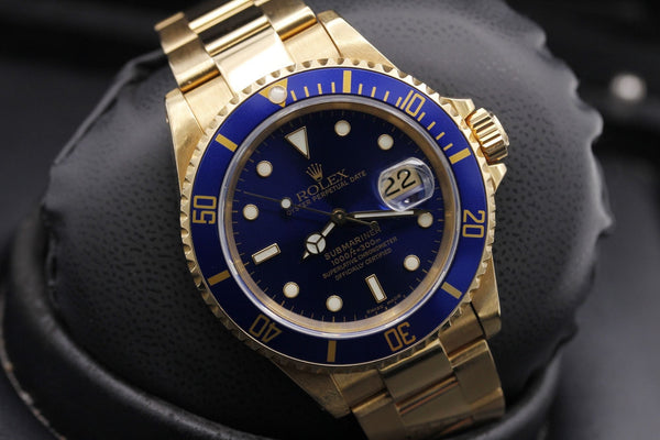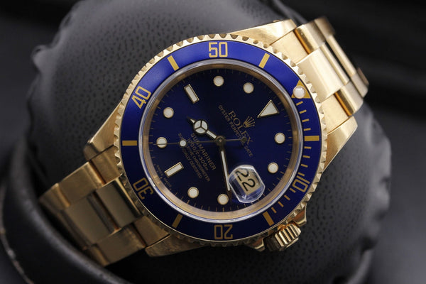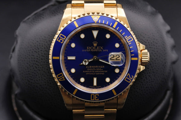 Rolex Submariner 16618 – Blue Dial, Yellow Gold, 40mm – Excellent Condition
