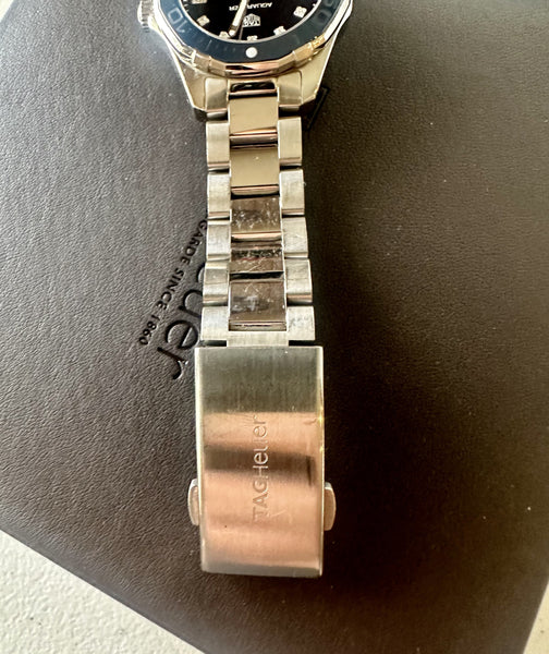 This TAG Heuer Aquaracer 300M Quartz 35mm is in excellent condition, with minimal signs of wear. The sapphire crystal and ceramic bezel are flawless, and the strap is in like-new condition. A stunning and reliable timepiece ready for its next owner.